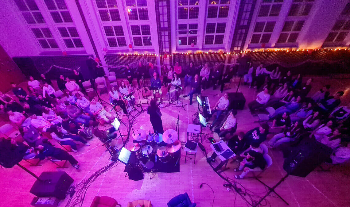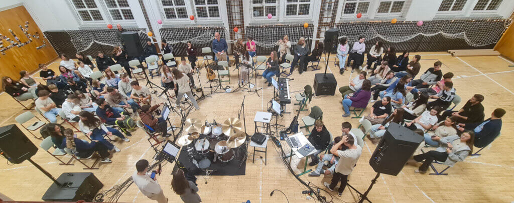 Október 22-én éjjel a Pápai Református Kollégium Gimnáziumának falai között valami különös történt. Közel nyolcvan kamasz gyűlt össze, hogy együtt énekeljen, játsszon, táncoljon és imádkozzon. Hogy együtt lélegezzen fel egészen a magas mennyig tárva ki szívét. Az éjszaka nem a kimerülésről, hanem az ébredésről szólt. A tornaterem közepén álltam, és a körkörös elrendezés egyszerre tűnt hétköznapinak és szakrálisnak. A körök belülről kifelé nyíltak, mint egy hagyma rétegei. Ahogy képzeletemben lebontottam ezeket a rétegeket, nem fogyott el semmi, épp ellenkezőleg: kitárult valami. Mintha minden lehántott burok után egyre közelebb kerültünk volna a Mindenséghez, Istenhez, aki nem elvont fogalom volt azon az éjjelen, hanem tapintható jelenlét.