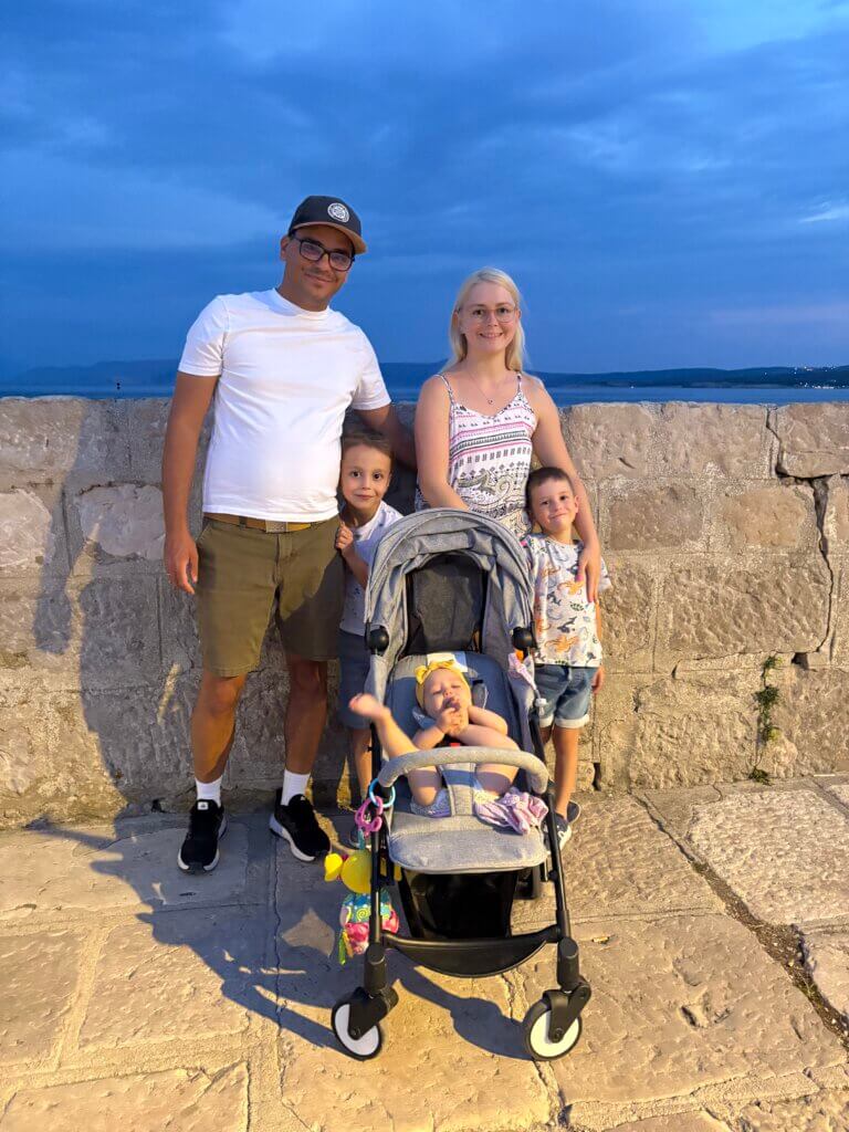 Bertókné Kovács Valentinának hívják a feleségemet, és egy pápai „Fekete lyuk”-as szilveszter után ismerkedtünk meg. Egy helyen szilvesztereztünk, én a teológus barátaimmal, ő pedig a családtagjaival és barátaival. Ő látott meg azon az éjszakán, de egy szót sem beszéltünk. Aztán másnap nyomozni kezdett az interneten, és mivel Sárközi Gergőt ismerte, az ő segítségével azonosított be, és írt rám, hogy lenne-e kedvem egy kávéhoz. (Szerkesztői megjegyzés: Dr. Sárközi Gergely Antal noszlopi lelkész, adjunktus, levéltári munkatárs, egykori pápai teológus.) Gondoltam, egy kávéból mi baj lehet, szívesen találkoztam vele. Szóval a Fekete lyuk, szilveszter, sör, internet, kávé hívószavak után már háromgyermekes nagycsaládot alkotunk. (mosolyog) Érdekes, hogy bár gyermekként reformátusnak keresztelték, mert az édesapja református, de csak felnőttként egy alfa-kurzus után konfirmált a pápai református gyülekezetben. Pápán a Mezőben élelmiszer- és vegyiáru eladó szakon végzett, majd estin érettségizett a pápai Refiben. Jelenleg a Pápai Református Teológiai Akadémián katechéta-lelkipásztori munkatárs szakra jár, apró lépésenként halad, ahogy a gyermekek mellett tud, mert Zsigmond nyolc éves, Gáspár hat éves, Róza pedig egy. Pápához mindketten kötődünk Tinával, de már Nagykanizsa a közös otthonunk, és ide jár a gyülekezet óvodájába Gáspár és iskolájába Zsigmond. (Szerkesztői megjegyzés: Nagykanizsai Kiscsillag Református Óvoda és Bolyai János Református Általános Iskola.)