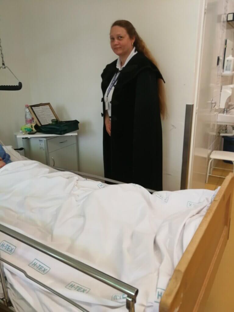 Éva: Egyáltalán nem az, mindig vannak munkatársaim. Kis létszámban dolgozunk, kettesben vagy hármasban. Tíz év alatt cserélődtek, de hála Istennek, Ő mindig tudja, kit kell mellém tennie. Nekem az nagyon fontos, hogy az egységünk jól működjön, harmónia legyen közöttünk, mert akkor jobban tudjuk tenni a dolgunkat. Az utóbbi öt évben a római katolikus egyház részéről kapok munkatársakat, tehát nem a kórház a munkáltató. Katolikus kórházlelkész és katolikus diakónus is munkálkodik velem, viszont nagyon jó az ökumené a kórházban is, ahogy a városban is. Nincs ellentét, hanem egység van. Elfogadók felém és elfogadják a vezetésemet, amit én nagy örömmel tapasztalok. Jövő májusban lesz tíz éve, hogy elindult a kórházi kórus, ami szintén közösségi erővel bír. Bár most többek betegsége miatt szünetelünk ősz óta, de ünnepek múltával ismét összehív bennünket Dr. Kerekesné Pytel Anna karnagyunk. Viszont a hétfői zenés dicsőítés folyamatos a kápolnában. Ha a lelki munkatársakat és az énekkart említettem, akkor említést kell tennem az önkéntes munkatársakról is, akik legutoljára a mikulás-ünnepséget segítették megvalósítani, de ugyanúgy ott vagyunk velük a Semmelweis-napon és a Kaposi Mór-napon is. Helyileg pedig nemcsak Kaposváron, hanem Mosdóson és Toponáron is szolgálok, mint kórházlelkész.